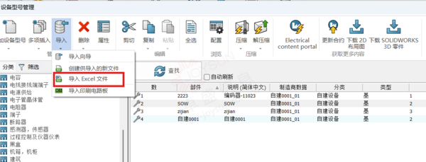有关数据库里面设备型号如何创建的说明发表时间:2025-08-04 15:43 有关数据库里面设备型号如何创建的说明 文章来源:solidworks代理商-卓盛信息 设备型号 关于设备型号的创建和方式有两种方法: 第一种,在软件里面创建,并完善其型号属性。 第二种,借助Excel表格去导入设备型号。 第一种创建方法如下图所示: 选择正确的分类创建设备型号。